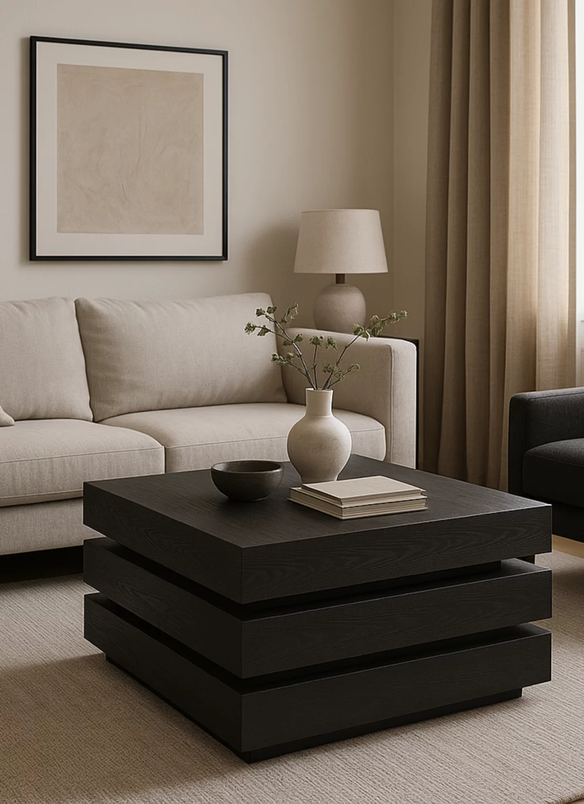 De Trivon salontafel is uitgevoerd in zwart eikenhout en valt op door zijn compacte en evenwichtige vierkante vorm. Het formaat van 100×100×45 cm biedt een functioneel oppervlak voor dagelijks gebruik, terwijl de strakke lijnen en hoogwaardige afwerking zorgen voor een rustige uitstraling in de woonruimte. De solide constructie maakt Trivon geschikt voor moderne en eigentijdse interieurs.