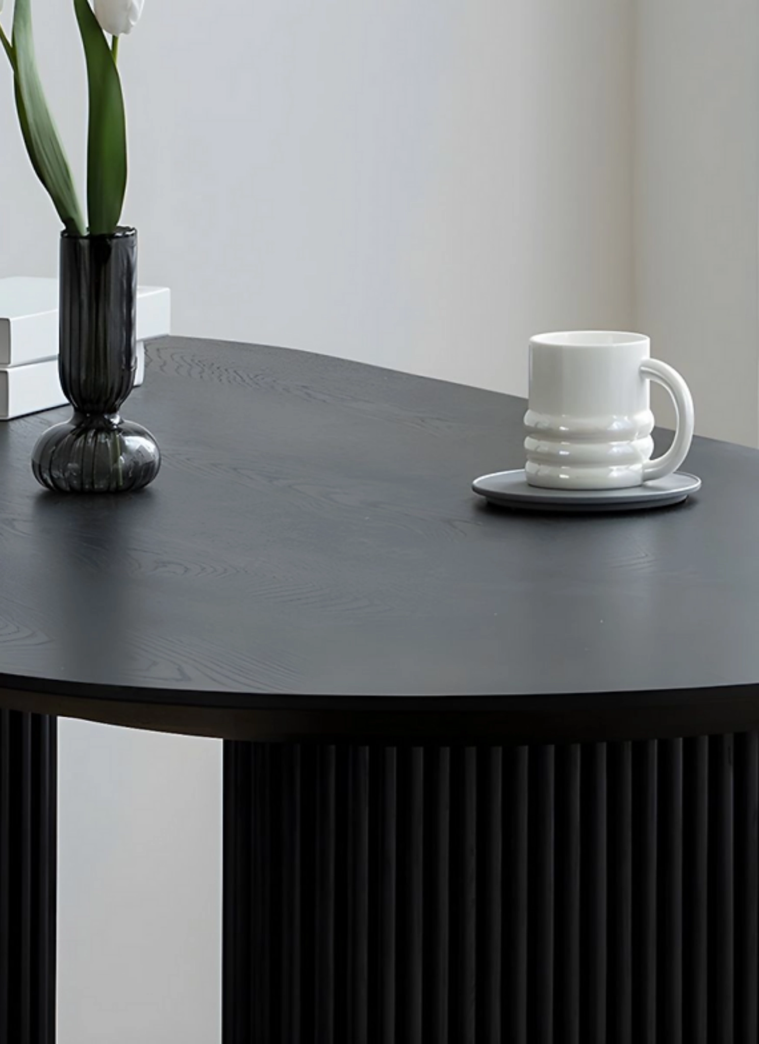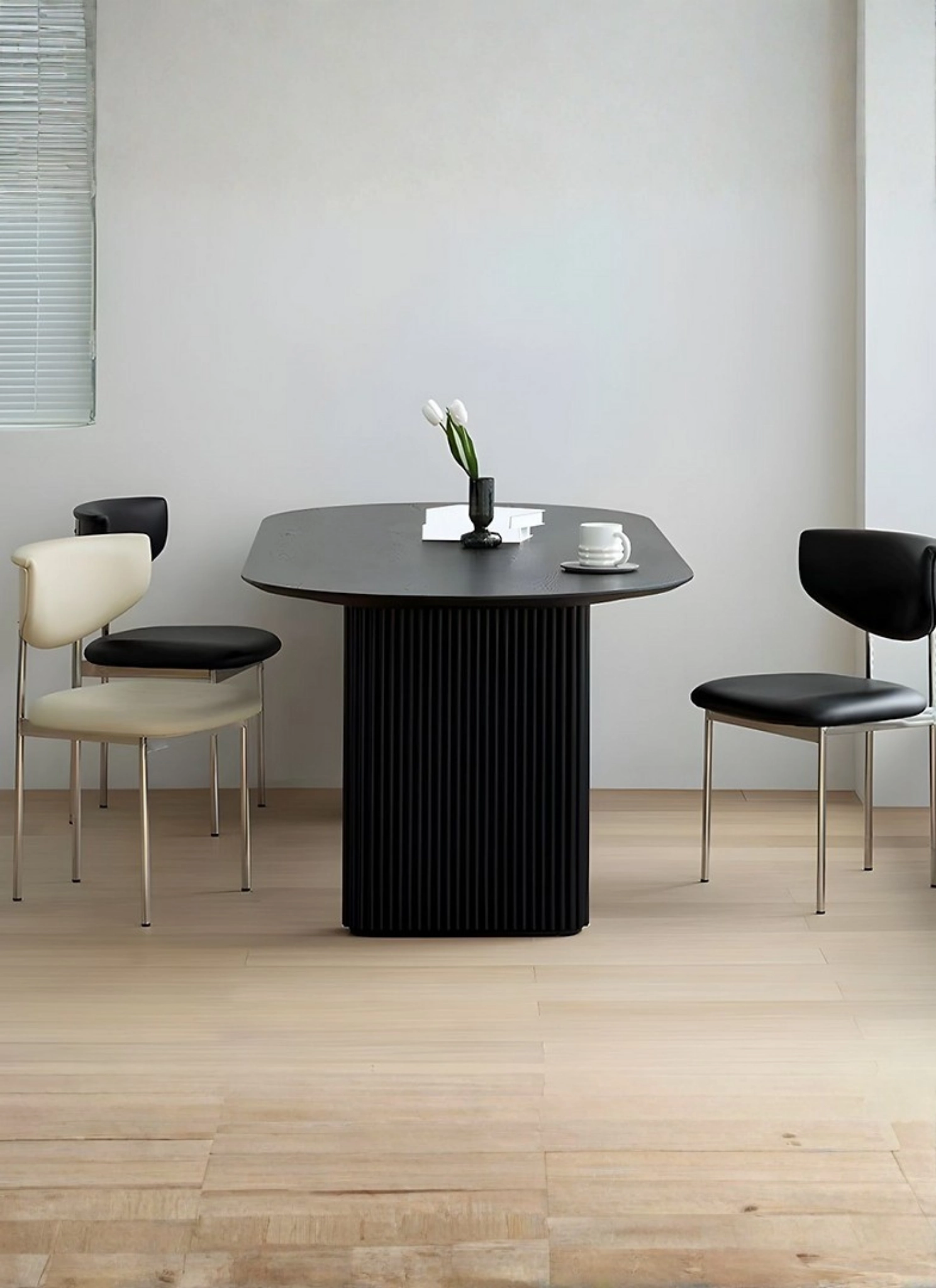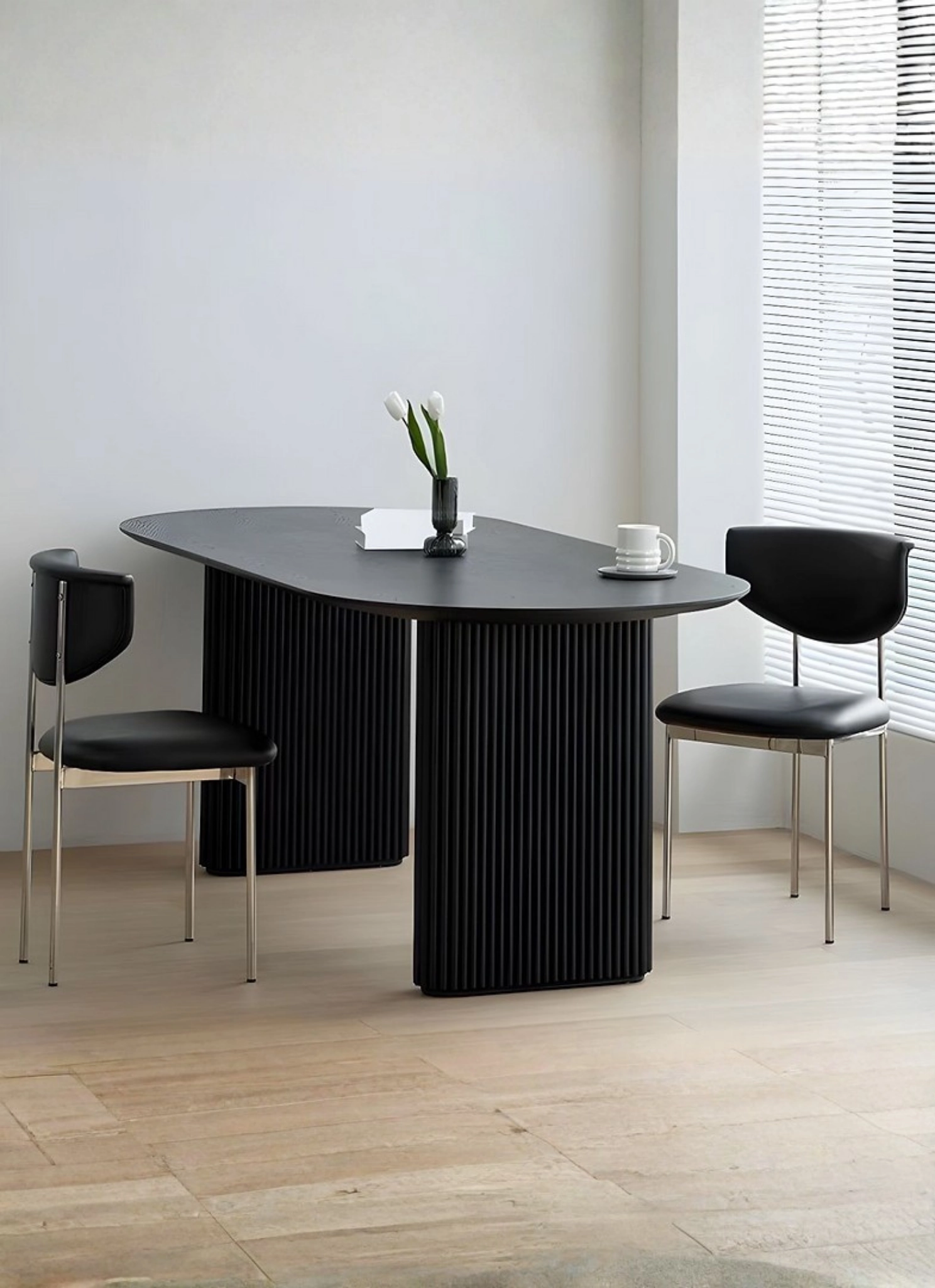 De Vertura eettafel combineert een strak lijnenspel met de krachtige uitstraling van zwart eikenhout. Dankzij de verschillende maatopties van 180 tot 300 cm biedt Vertura een flexibele oplossing voor zowel compacte eetruimtes als ruime woon- en eetkamers. Het robuuste tafelblad en de solide constructie zorgen voor stabiliteit en comfort bij dagelijks gebruik. Vertura past moeiteloos in moderne en minimalistische interieurs waar functionaliteit en esthetiek samenkomen.